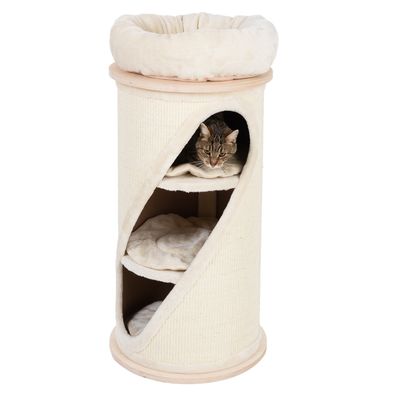 Elegantan valjak za grebanje, za mačke, za teške mačke i za domaćinstva s više mačaka, 3 skrivalice, 1 meki krevet, dijagonalni ulazi, velike površine za grebanje, robustan, dimenzije: V 93 x Ø 46 cm